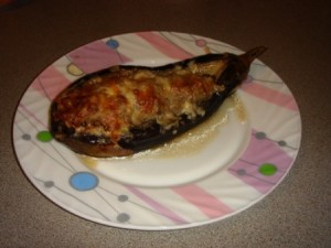 Баклажаны очистить, разрезать вдоль, вынуть часть мякоти, посолить и дать постоять 20минут.