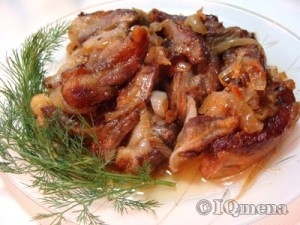 Посолить, перемешать, добавить перчик целиком, накрыть крышкой, готовить на малом огне 1,5-2 часа. Вынуть перчик, посолить, поперчить, перемешать баранину с луковым соком.