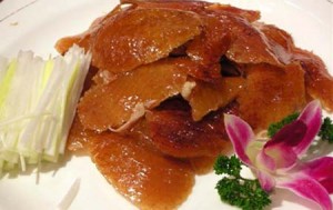 10. Режем готовую утку по-пекински ломтиками и подаем к столу на блюде с несладкими блинами из рисовой или пшеничной муки, тонким армянским лавашом.